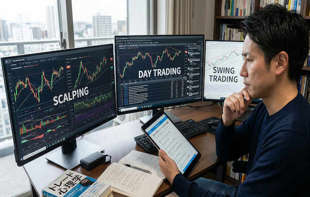 取引スタイルによって、チャートを見る頻度やポジションの持ち越し有無が変わります。合わないスタイルを選ぶと、判断が雑になったり想定以上のストレスを感じやすくなったりするからです。