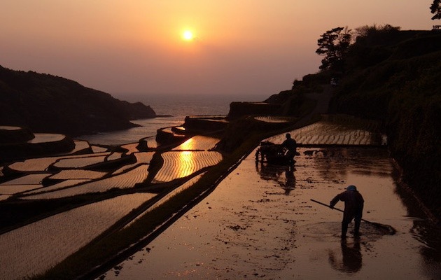 夕日が海面と水田をオレンジ色に染める時期は特に人気で、春〜初夏は写真を撮りに訪れる人が増えます。